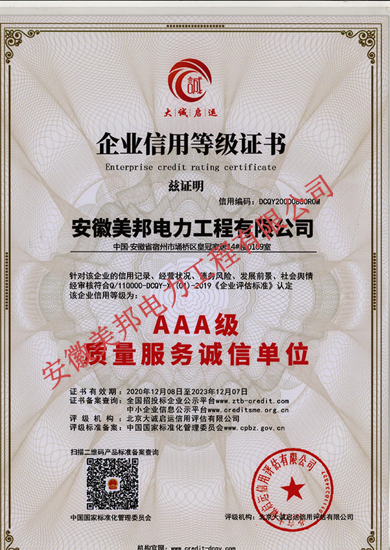 安徽美邦電力工程有限公司成立于2015年6月,坐落于宿州高新區。是一家從事電力工程設計、電力設備生產、電力工程施工、電力托管服務、電力工程搶險為一體的一站式綜合性公司。公司現有各類專業技術職稱的管理人員及大批從事電力工程專業施…
